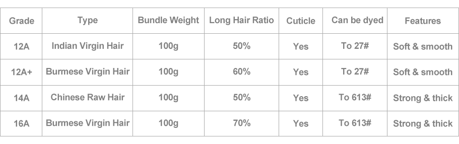 Ghair factory mainly provides 4 grades 100% human hair : 12A/ 12A+/ 14A/ 16A+